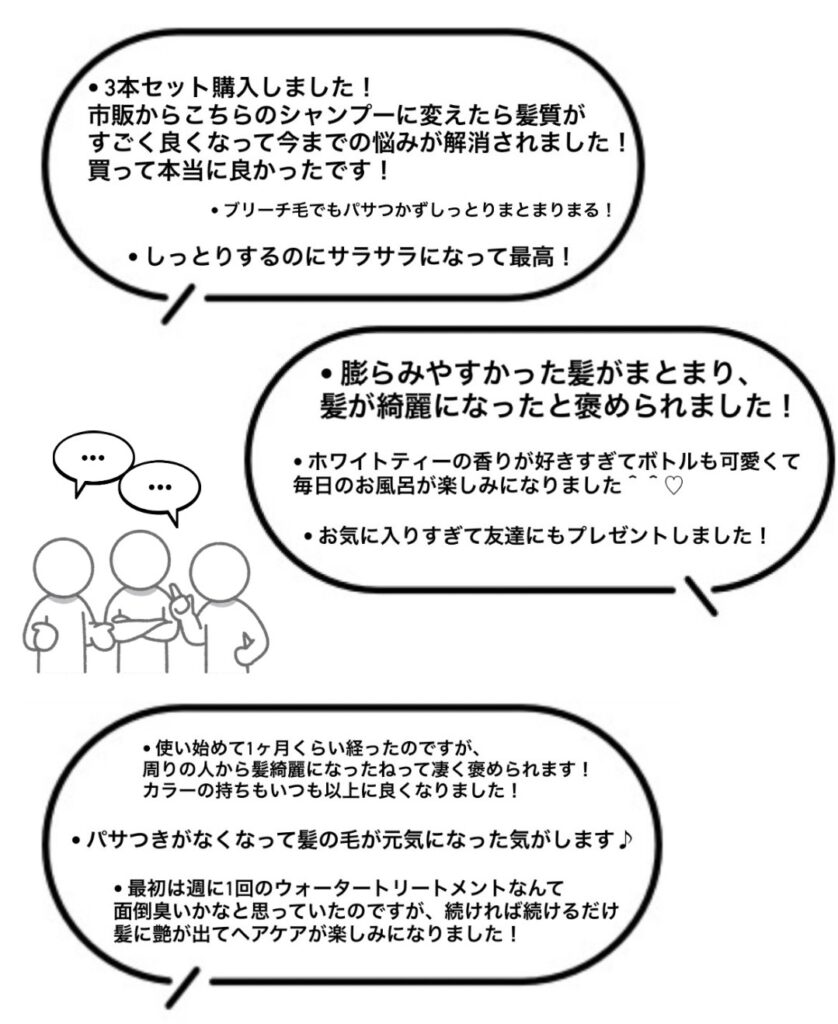 2ヶ月で9000個売り上げ、瞬く間に完売したあの大人気シャンプー&トリートメントを再発売するにあたり、今回はこれまでにいただいたリアルなお客様の声をご紹介いたします♪